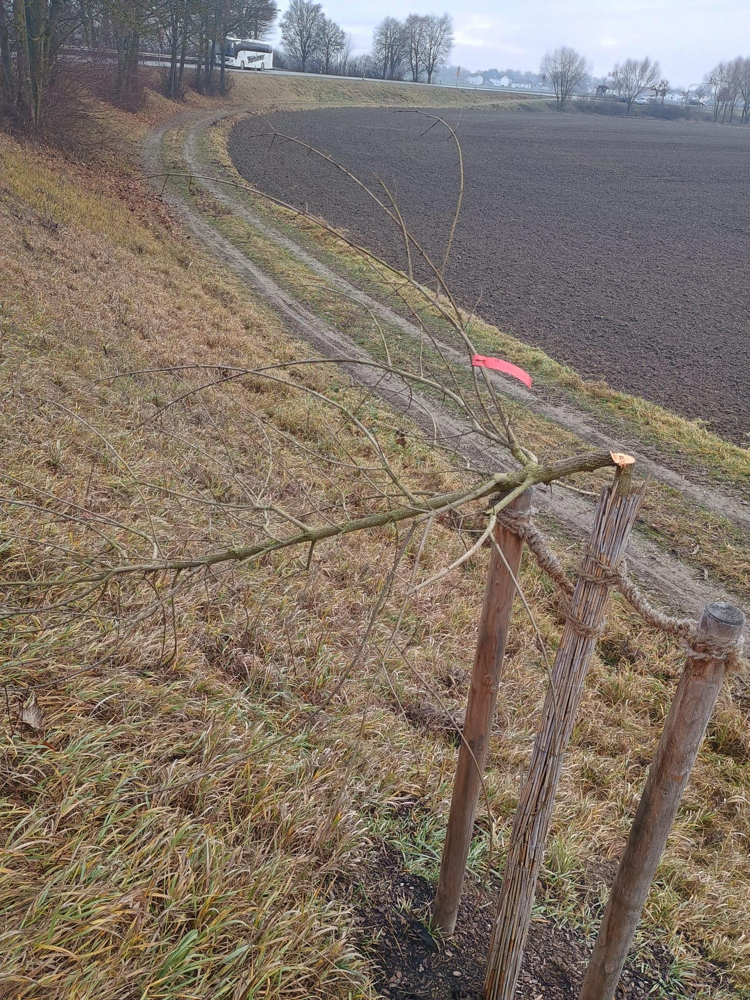 Die beiden Bäume waren eine Ersatzpflanzung für Bäume, die an anderer Stelle aus Sicherheitsgründen an der Kreisstraße entfernt werden mussten. „Der Pflanzort dieser beiden neuen Bäume lag auf einem großen, freien Böschungsabschnitt, der zur Kreisstraße mit Leitplanken geschützt ist und zu dem angrenzenden Feldweg und den daran anschließenden landwirtschaftlichen Flächen einen ausreichenden Abstand bietet und sich daher ideal für die Ersatzpflanzung angeboten hat“, erläutert Harald Götz von der Kreisfachberatung, der sich über diese Art von Baumfrevel entsetzt zeigt. „So ein Vorgehen ist nicht nur aus Naturschutz-Sicht ärgerlich, sondern es verursacht auch unnötige Kosten. Denn die Kosten für Pflanzenlieferung und Pflanzung auf der Böschungsfläche beliefen sich auf ca. 1.000 Euro.“
