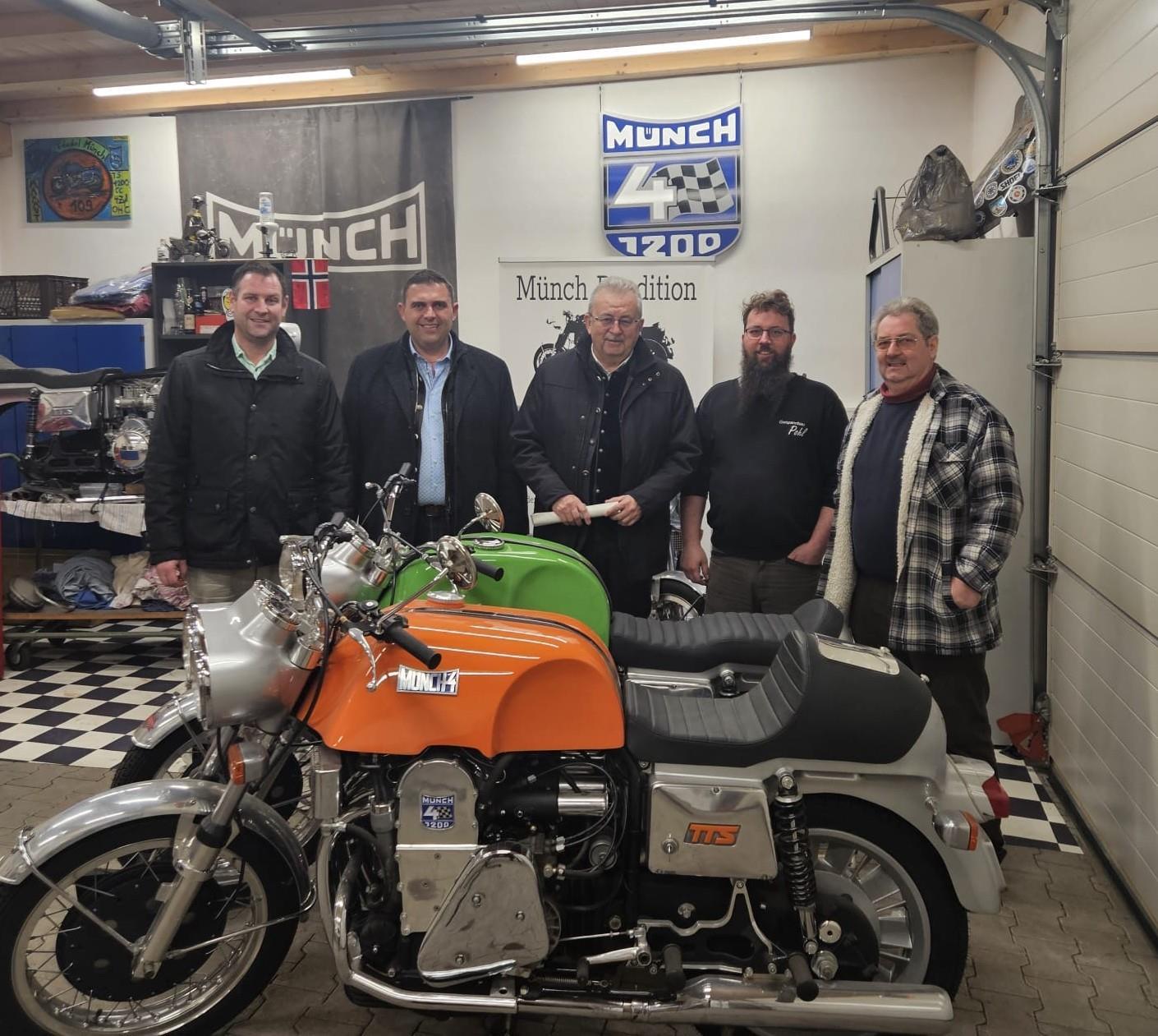 „Jedes Bauteil wird selber hergestellt“, betonte Pohl beim Besuch von Landrat Josef Laumer. Dank einer Vereinbarung kann Pohl den Motorradklassiker Münch nachbauen, fertigt aber auch Beiwagen für fast alle Motorräder. Nachbau-Gussteile werden entweder anhand des Originalteils digitalisiert oder eigens konstruiert, um mit den 3D-Daten anschließend eine Sandgussform im 3D-Drucker realisieren zu können.