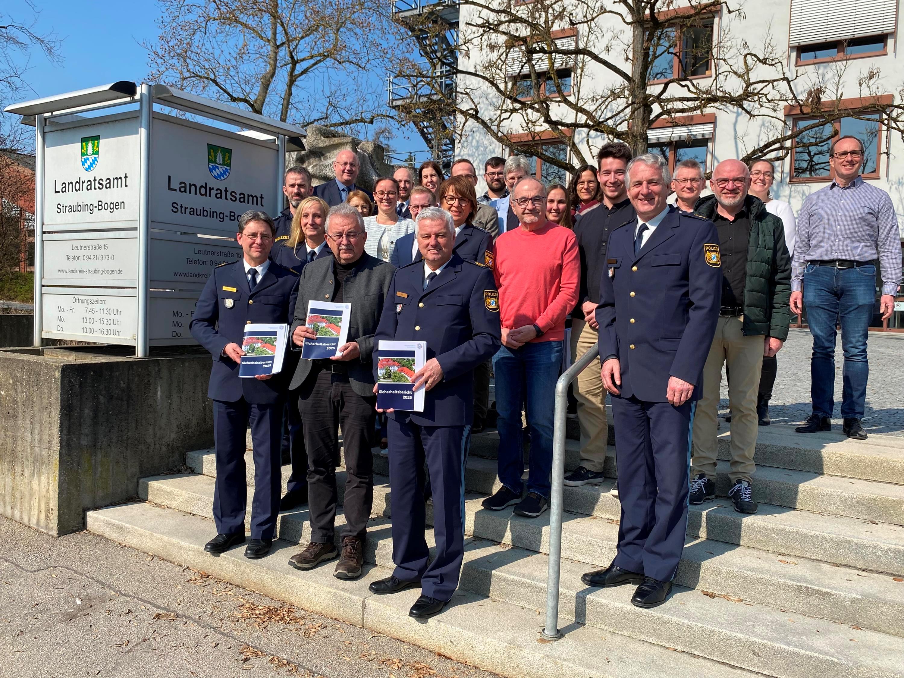 Übergabe des Sicherheitsberichts an Landrat Josef Laumer vor dem Landratsamt